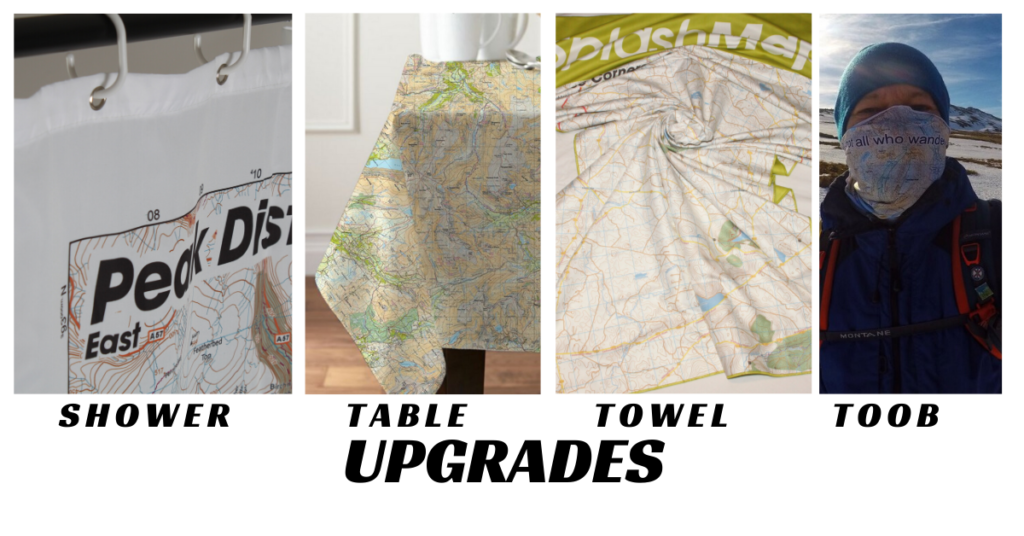 SplashMaps personalised fabric maps can be upgraded to shower curtains, tablecloths, quick-dry towels and Toobs